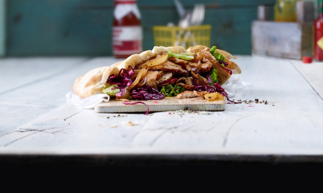 - 6 Fladenbrote halbieren, im Toaster kurz erwärmen und mit allen Zutaten nach Belieben füllen.